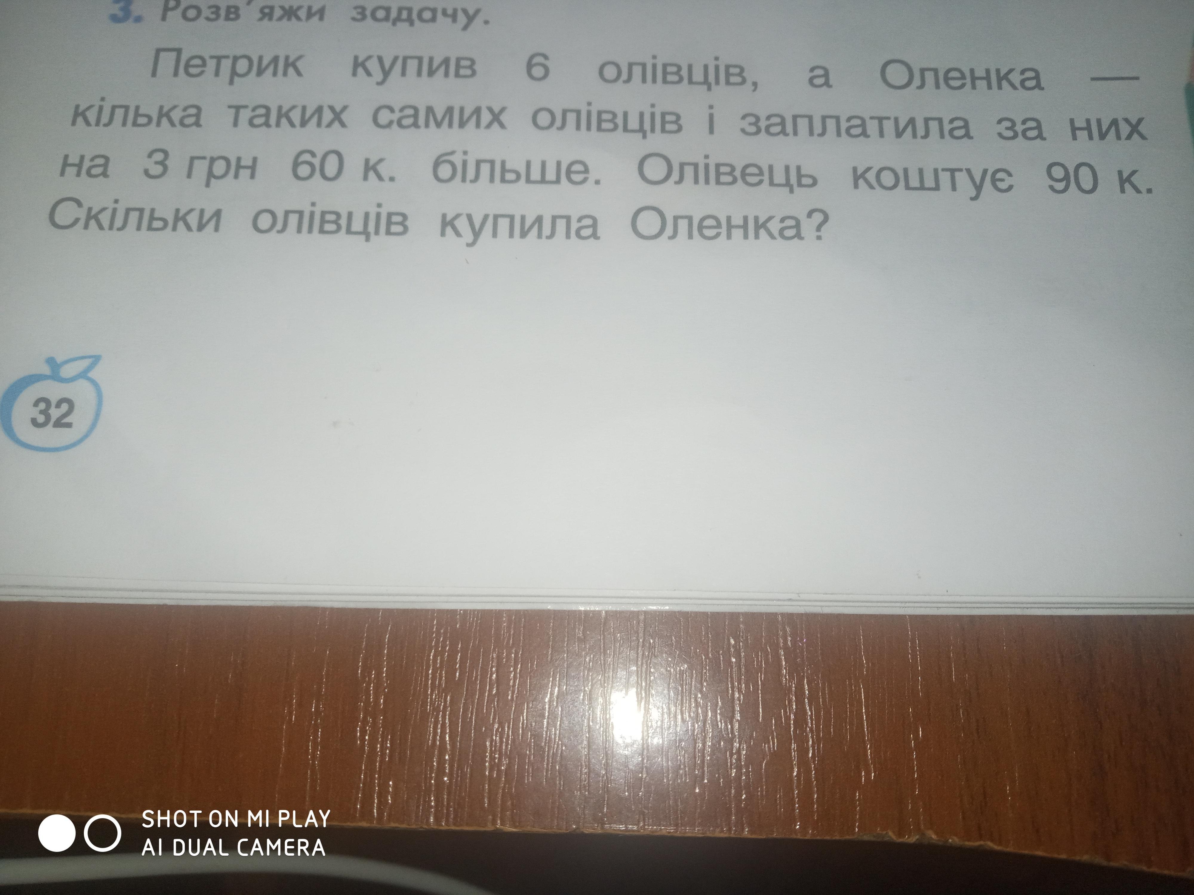тепер потрібно поділити цю суму на суму одного олівця, щоб дізнатися скільки олівців купила Оленка