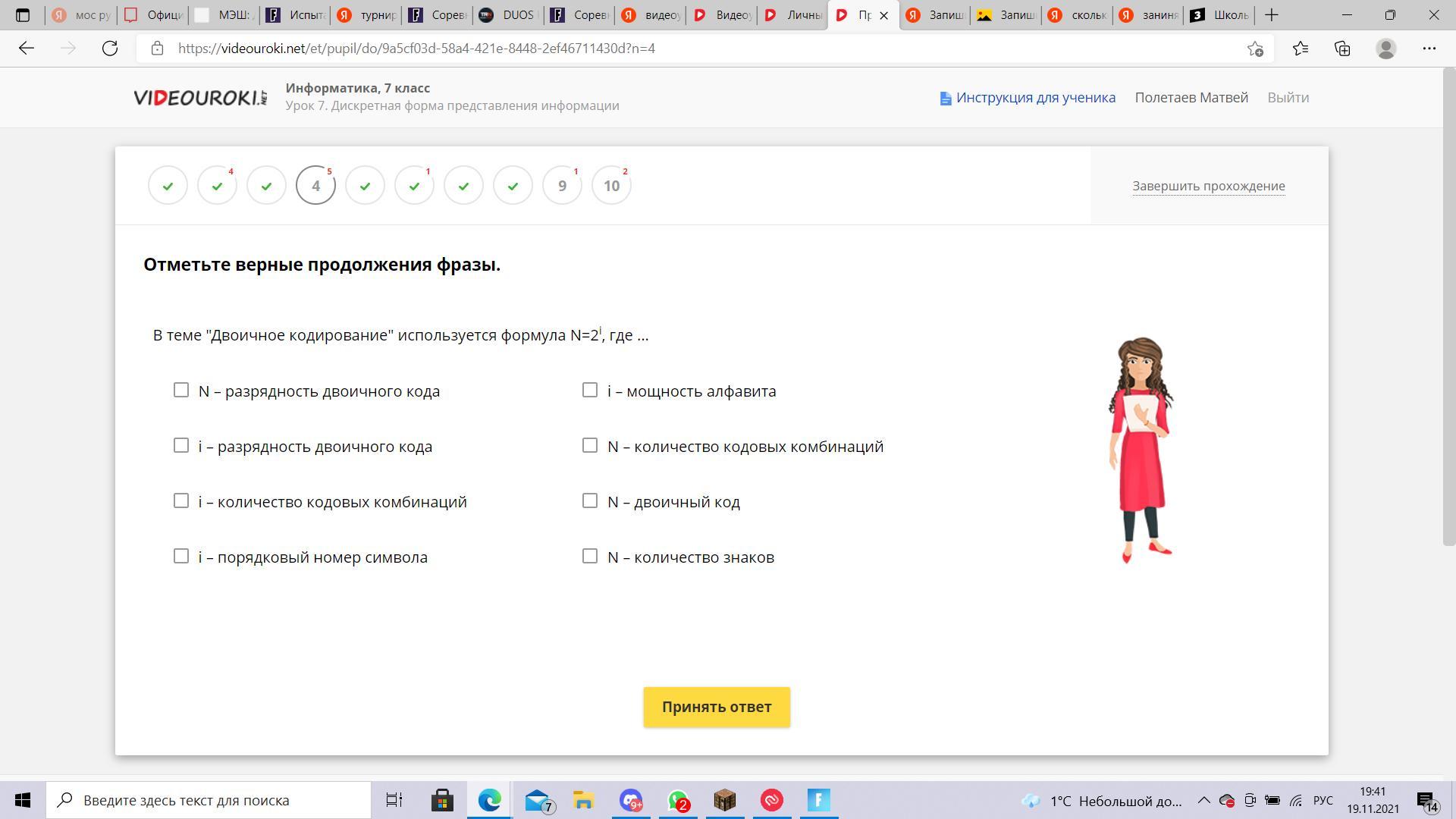 N- мощность алфавита (число символов в алфавите)