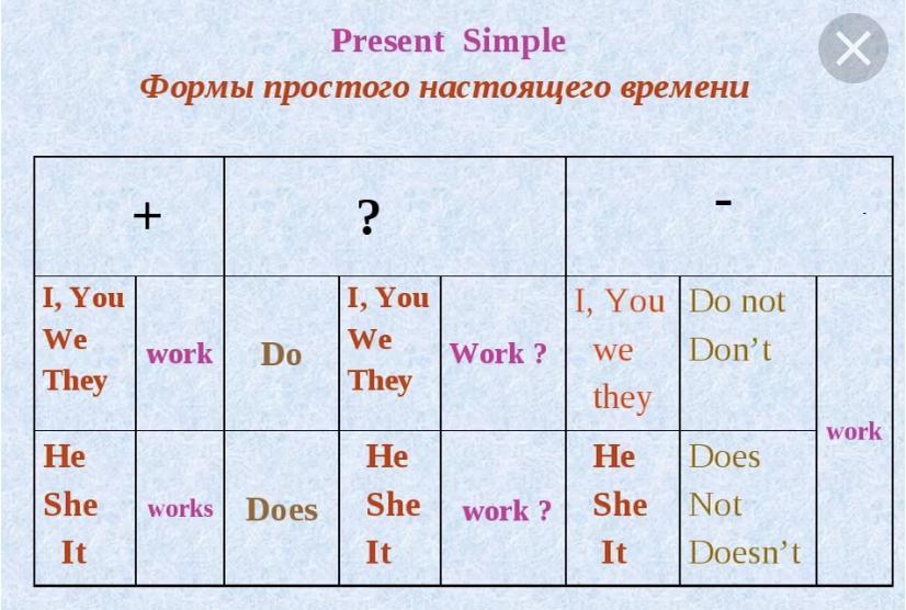 Вот , тебе таблица , знаки сверху - тип предложения. Утвердительное , вопросительное , отрицательное
