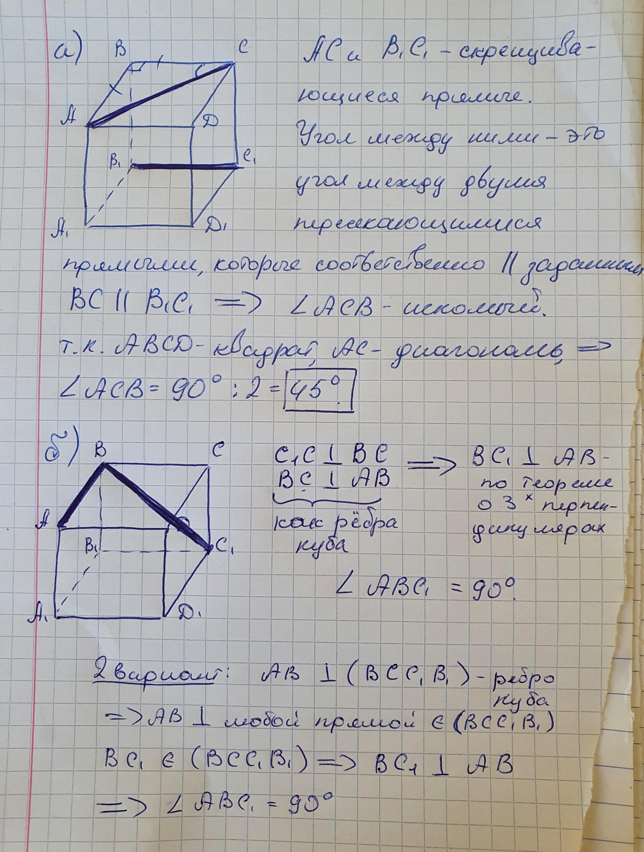 9.6. Для куба ABCDA,B,CD, найдите угол между прямыми: а) АС и В1С1 ; б) AB и BC1