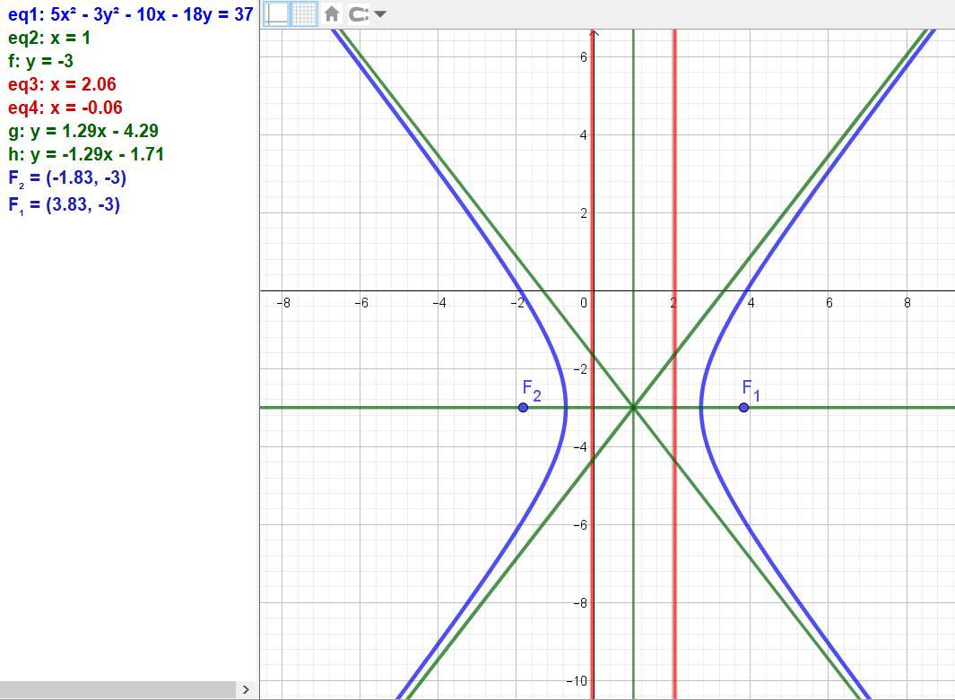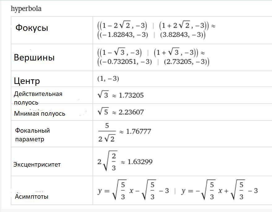 5(x - 1)² – 3(y + 3)² = 15. Разделим обе части уравнения на 15 и получаем уравнение гиперболы.