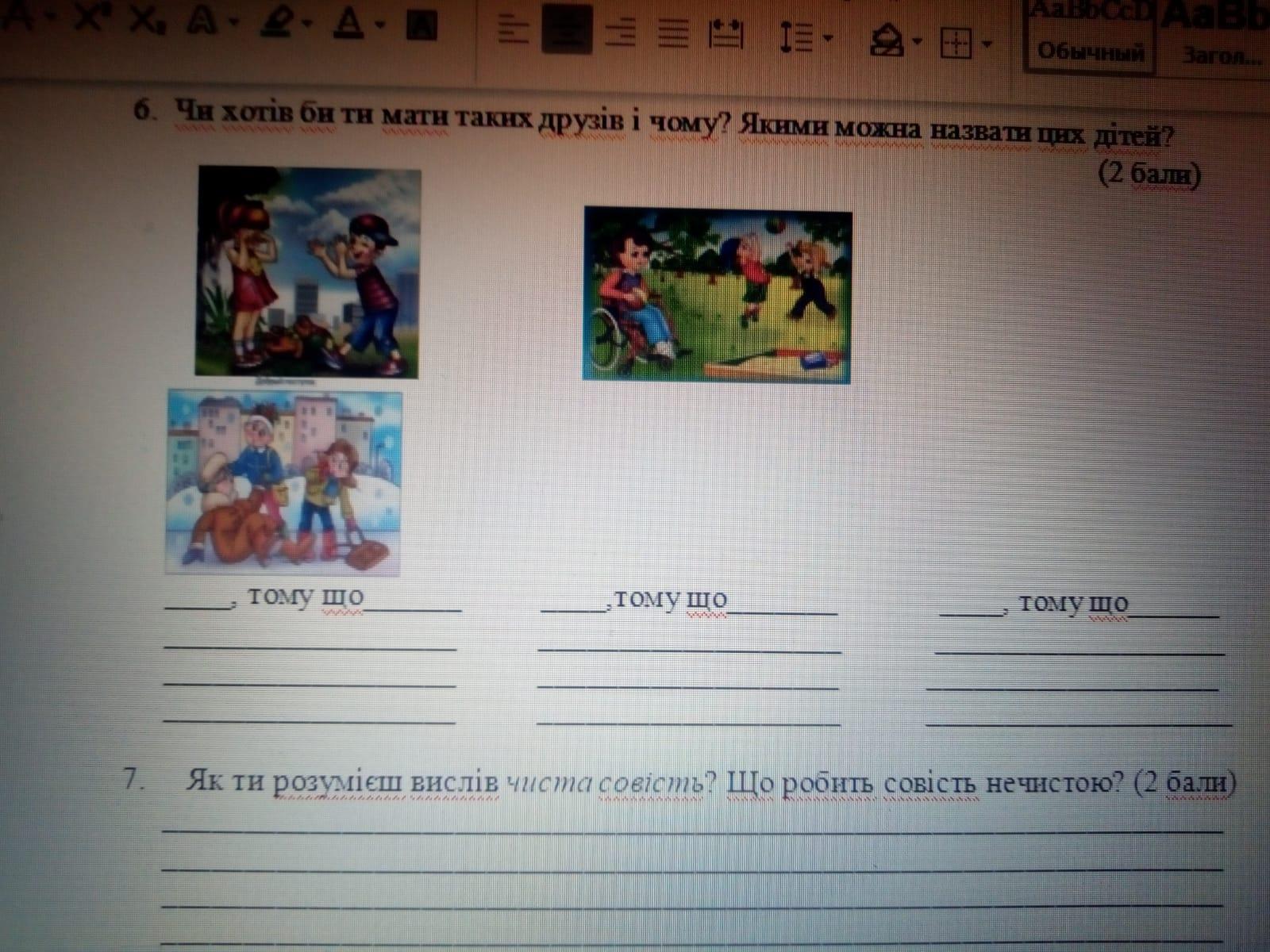 3.ні,тому що навить якщо дюдина не може ходити це не повід її важати ізгоем ,їй и так боляче вона не може роботи половину справ у житті ,а тут навіть друзі її плють у душу