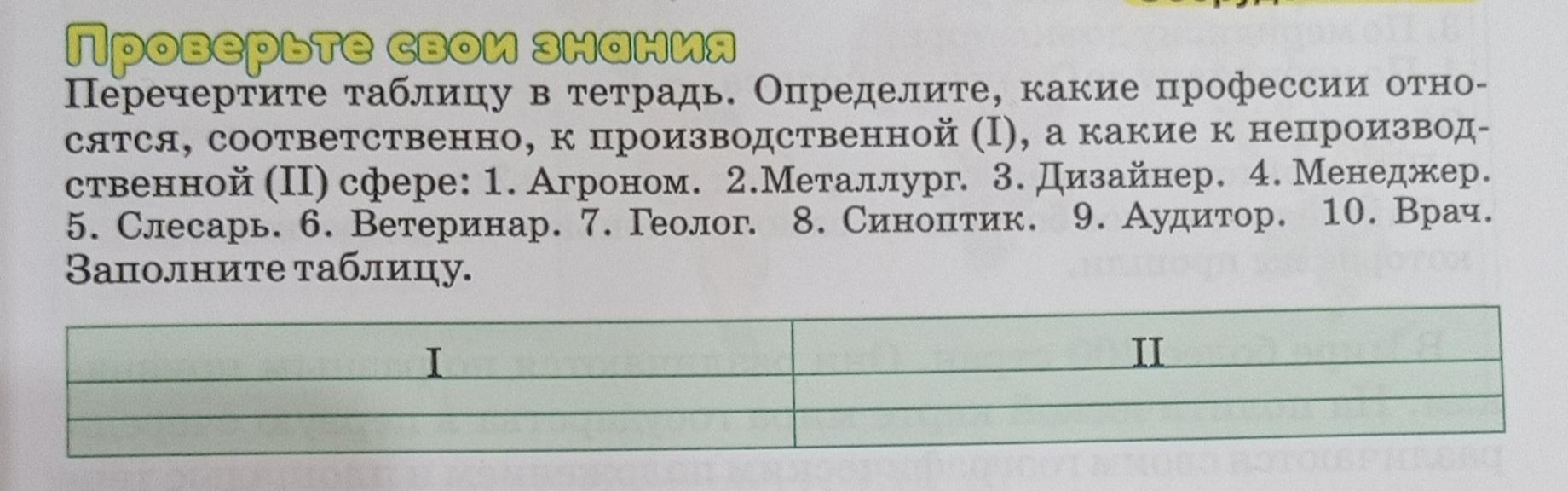 Непроизводственная: дизайнер, менеджер, ветеринар, геолог, синоптик, аудитор и врач.