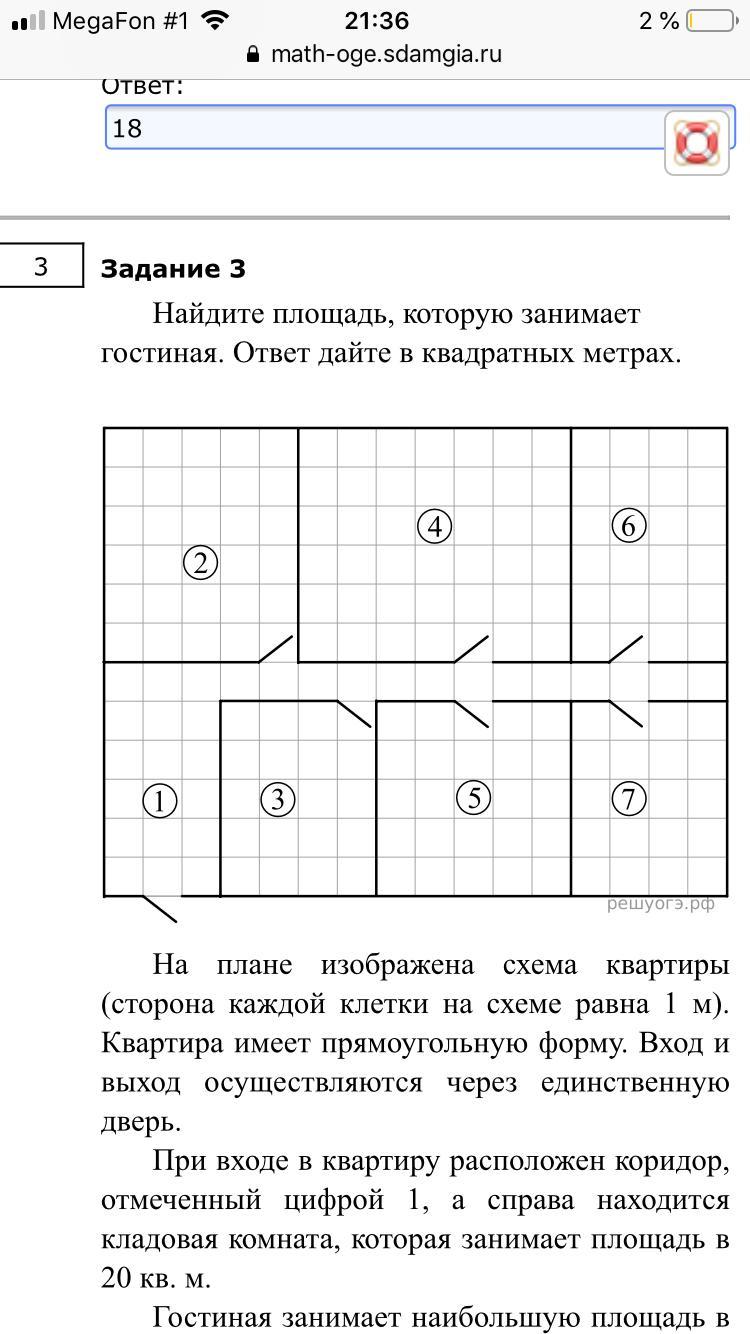 Остаётся только посчитать , сколько квадратиков в гостиной. Их 42, значит гостиная занимает площадь 42 м².