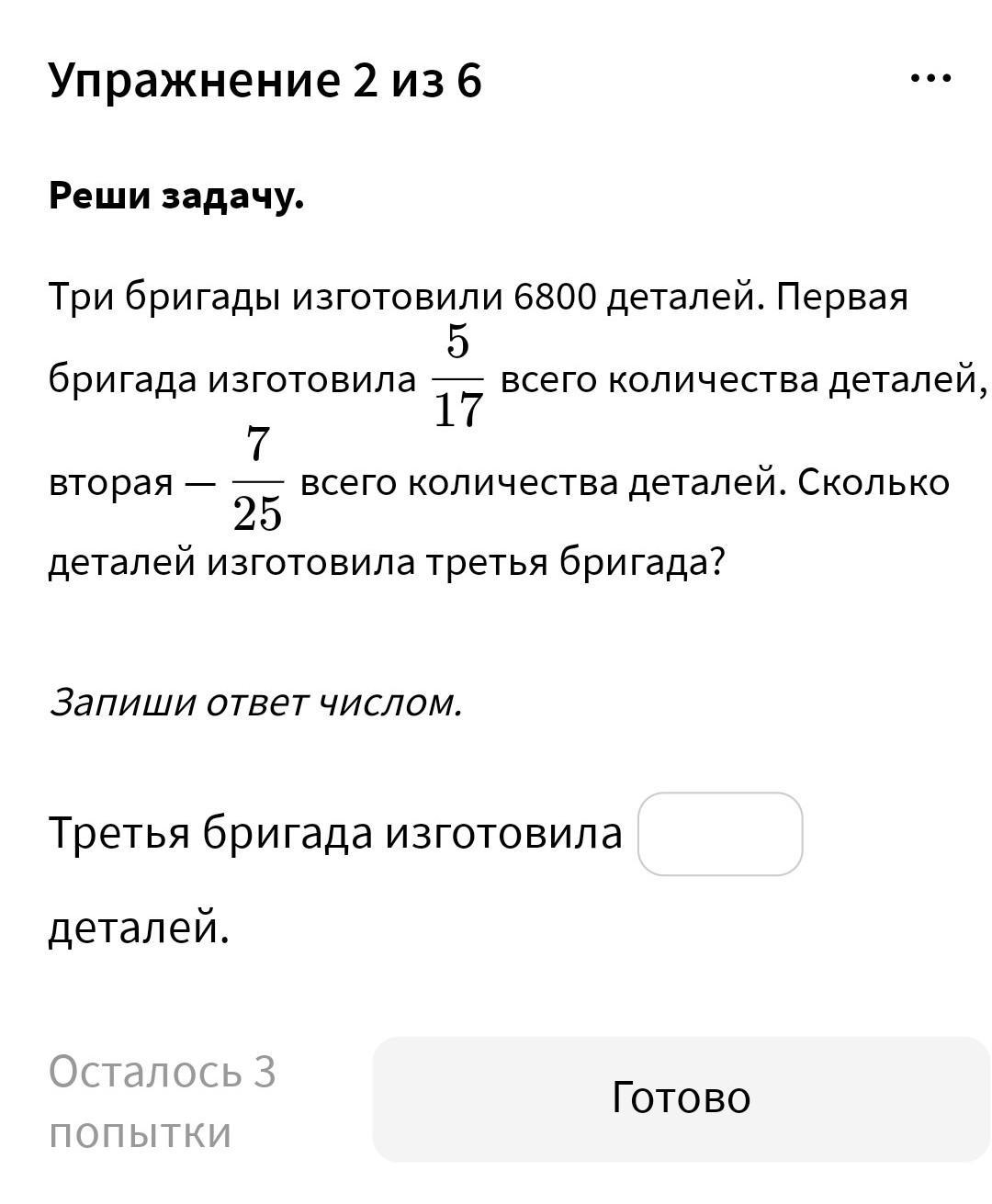 Первая бригада изготовила 6800 × 5/17=2000 деталей