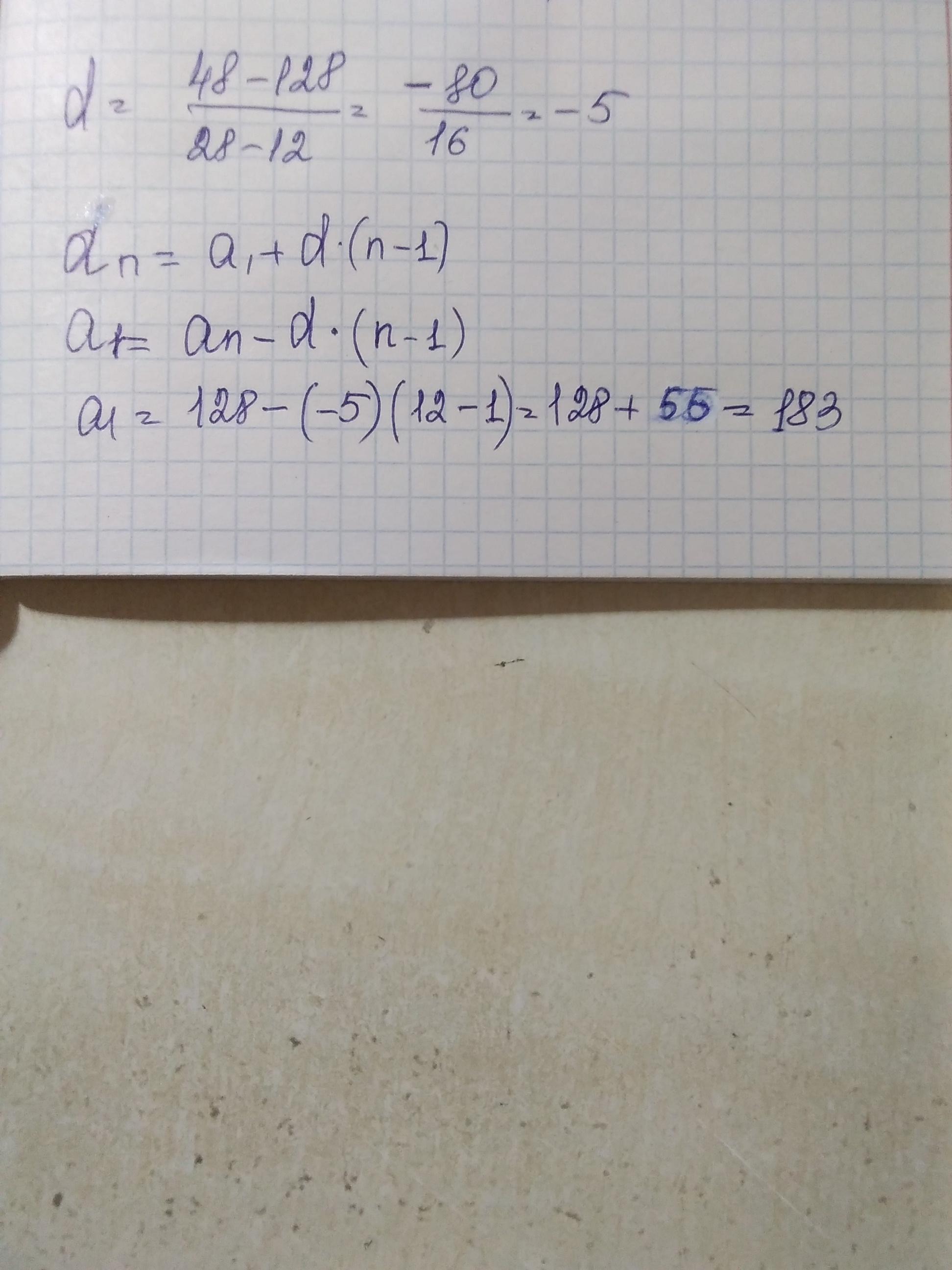 a₁=a₁₂-11d=128+5*11=128+55=183