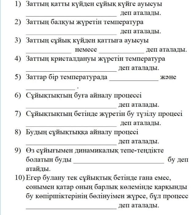 1).Заттың қатты күйден сұйық күйге ауысуы балқу деп аталады