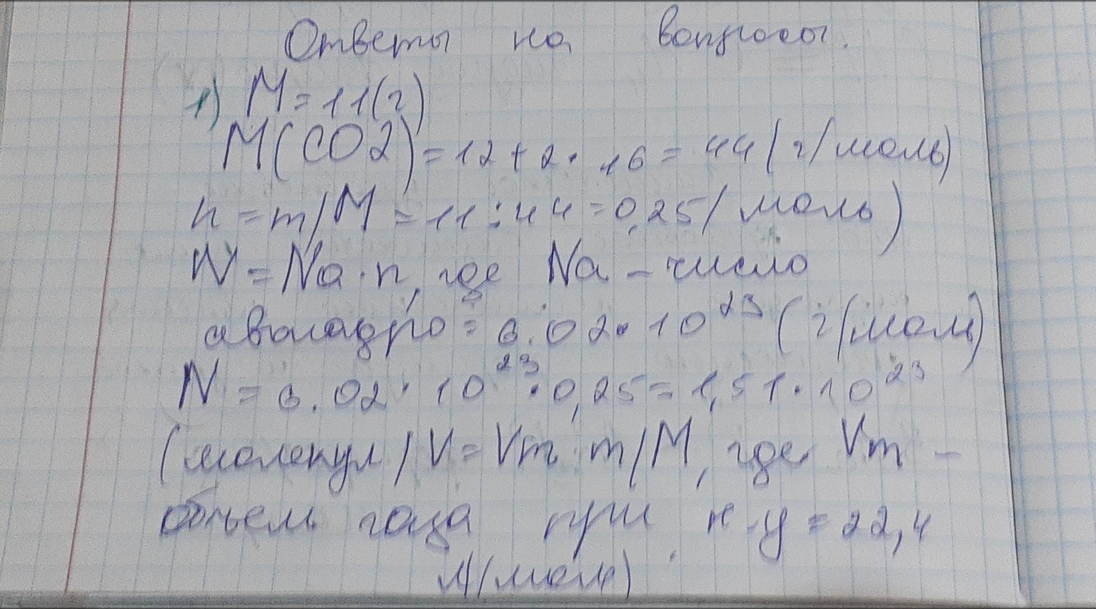 1. Вычислите объем, количество вещества, число молекул и об-