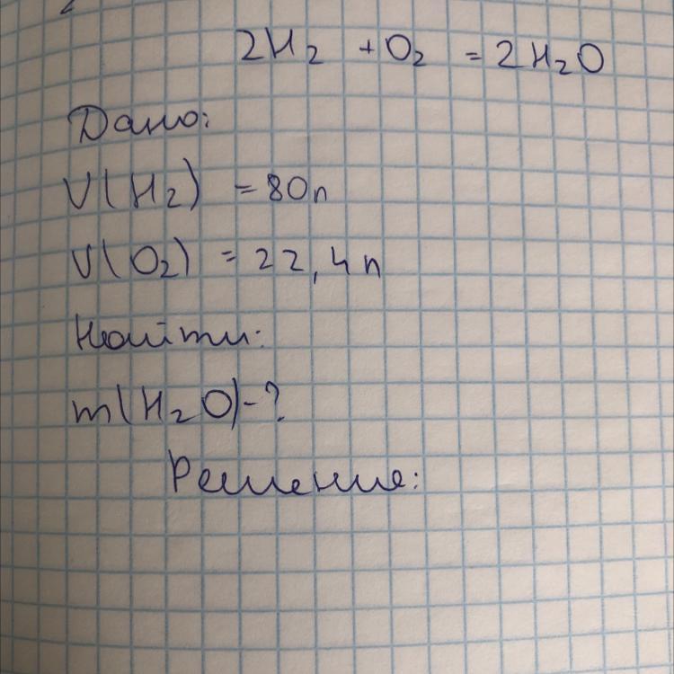 n(H2)= V/Vm= 80/(2×22.4) = 1.8моль