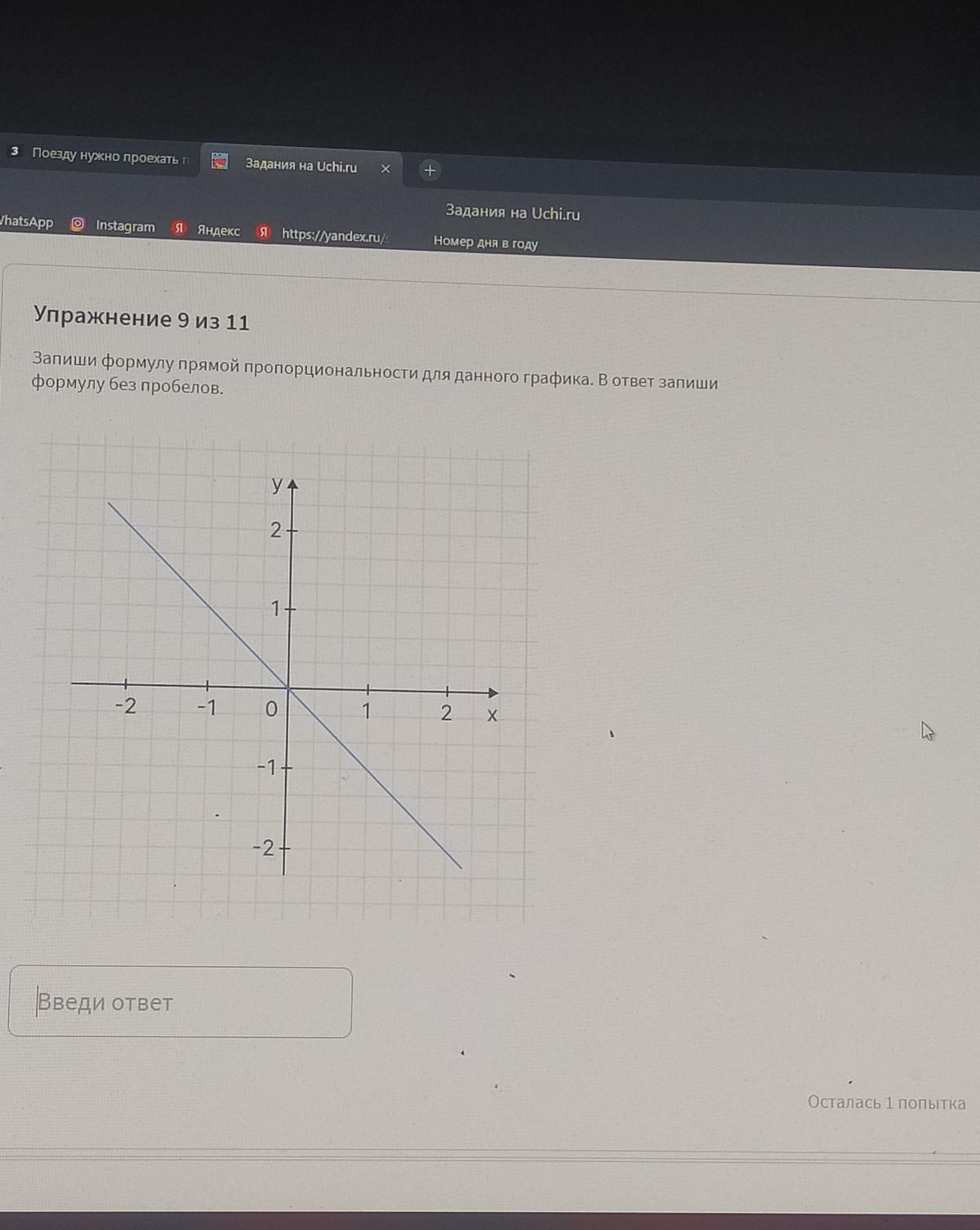 Уравнение прямой пропорциональности имеет вид : y=kx .