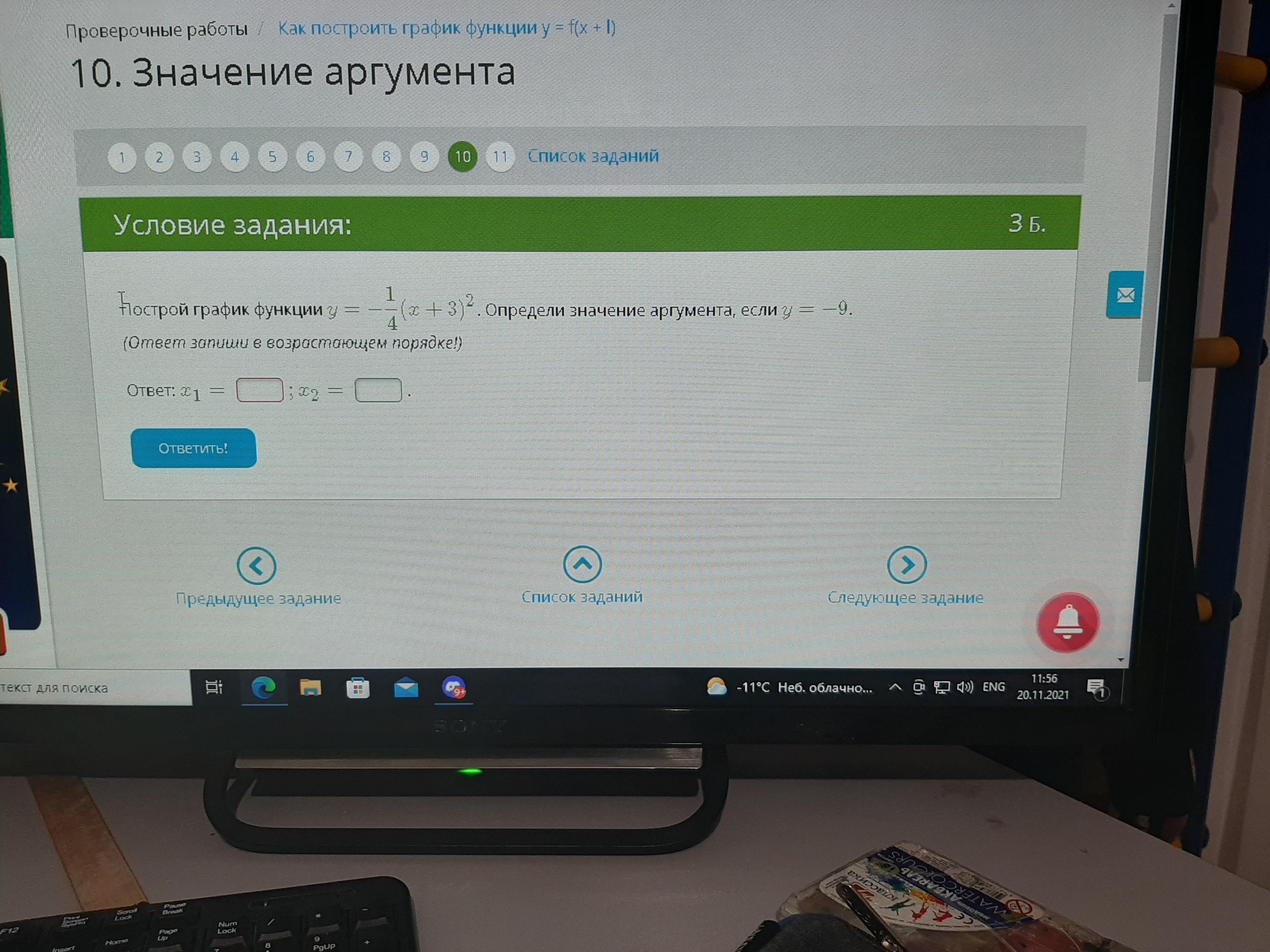 Подставляем вместо y -9 и считаем.
