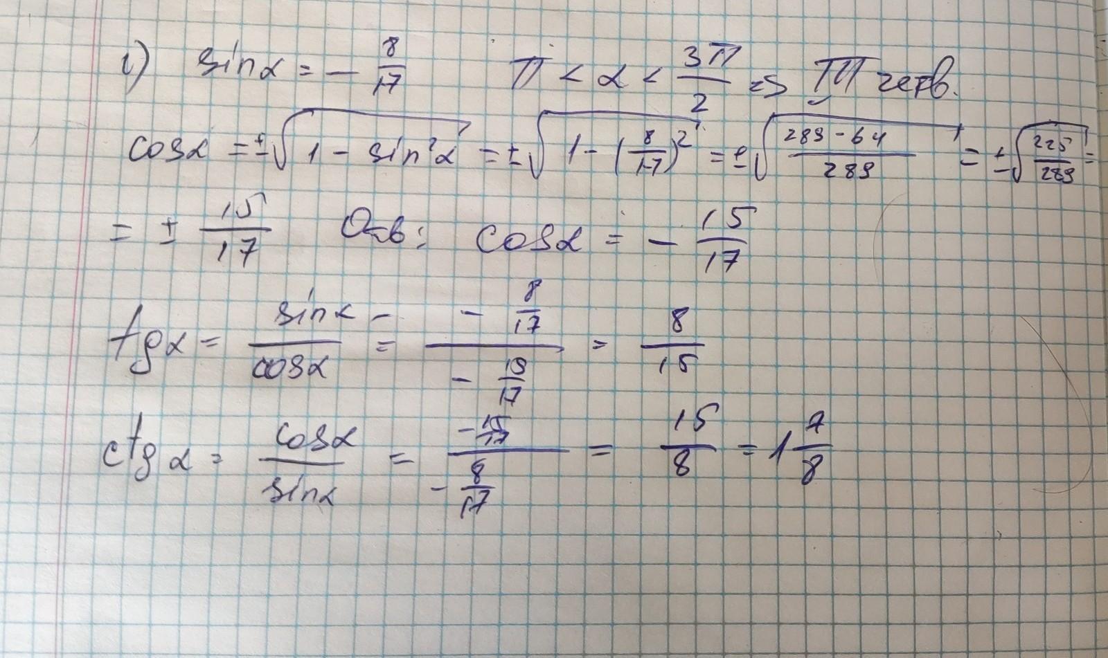 косинус для 3ей четверти будет со знаком - из-за этого стоит минус. нашли косинус из формулы