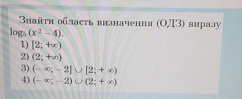 Ответ будет под цифрой 4: (-∞; -2)∪(2;+∞)