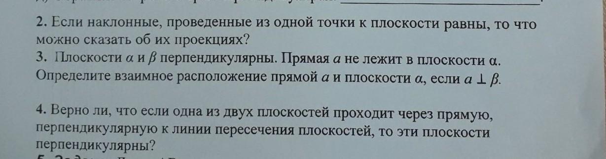 2) если проекции двух наклонных, проведенных в плоскости из одной точки, равны, то равны и наклонные.