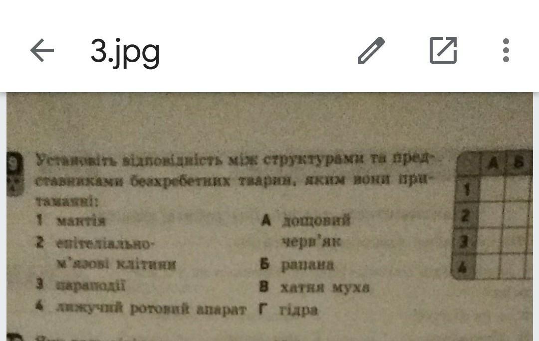 Установіть відповідність між структурами та представниками безхребетних тварин, яким вони притаманні.