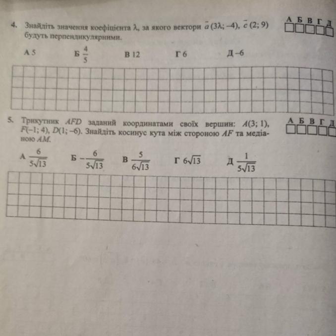 5 . У ΔAFD A( 3 ; 1 ) , F(- 1 ; 4 ) , D( 1 ;- 6 ) ; AM - медіана .
