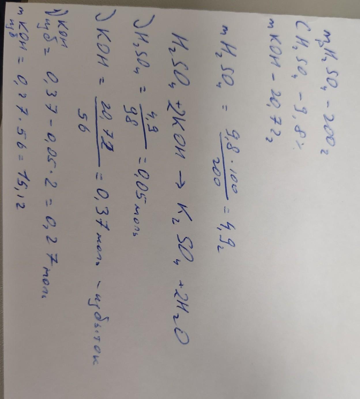 8.6.1. К 200 г 9,8% серной кислоты добавили 20,72 г едкого калия. Определите массовую долю избытка одного из реагентов в полученном растворе.