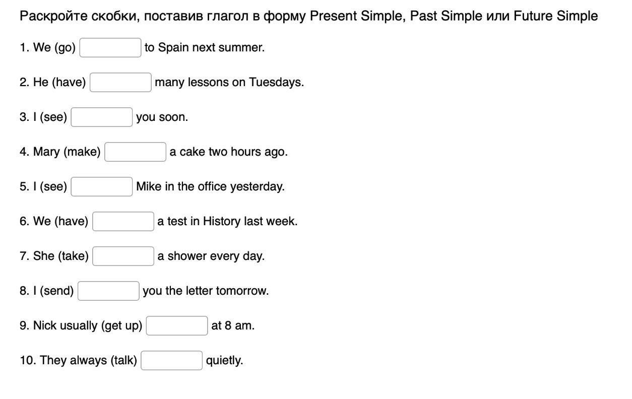 Will go.2)have.3) will see.4) made.5)saw