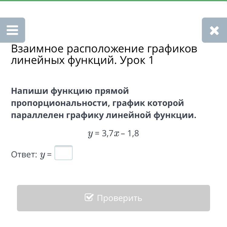 Из данной функции находим k = 3,7 ⇒ искомая функция y = 3,7x