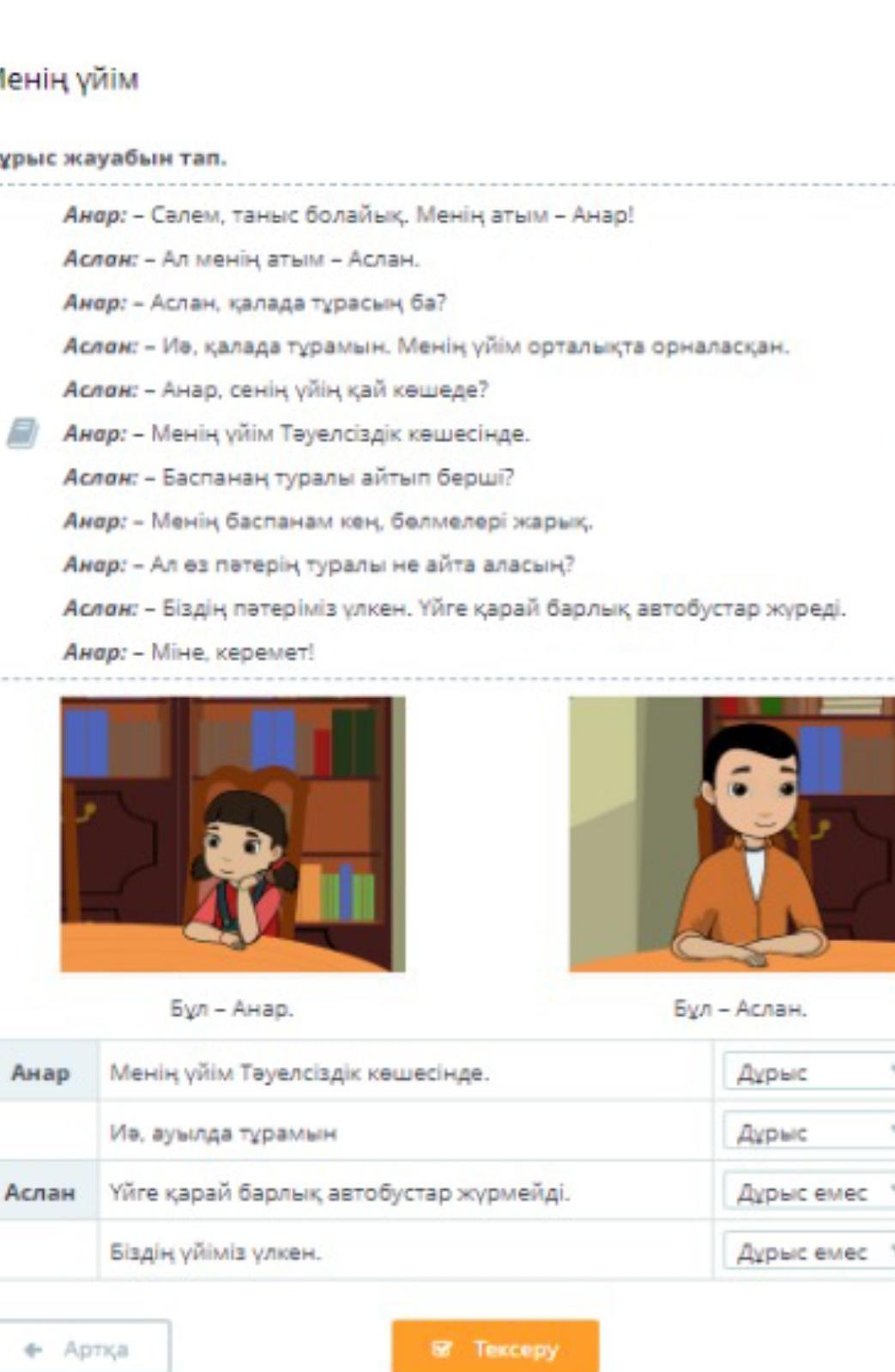 Помогите пожалуйста с казахским. Не могу понять верно ли я отметила или нет.
