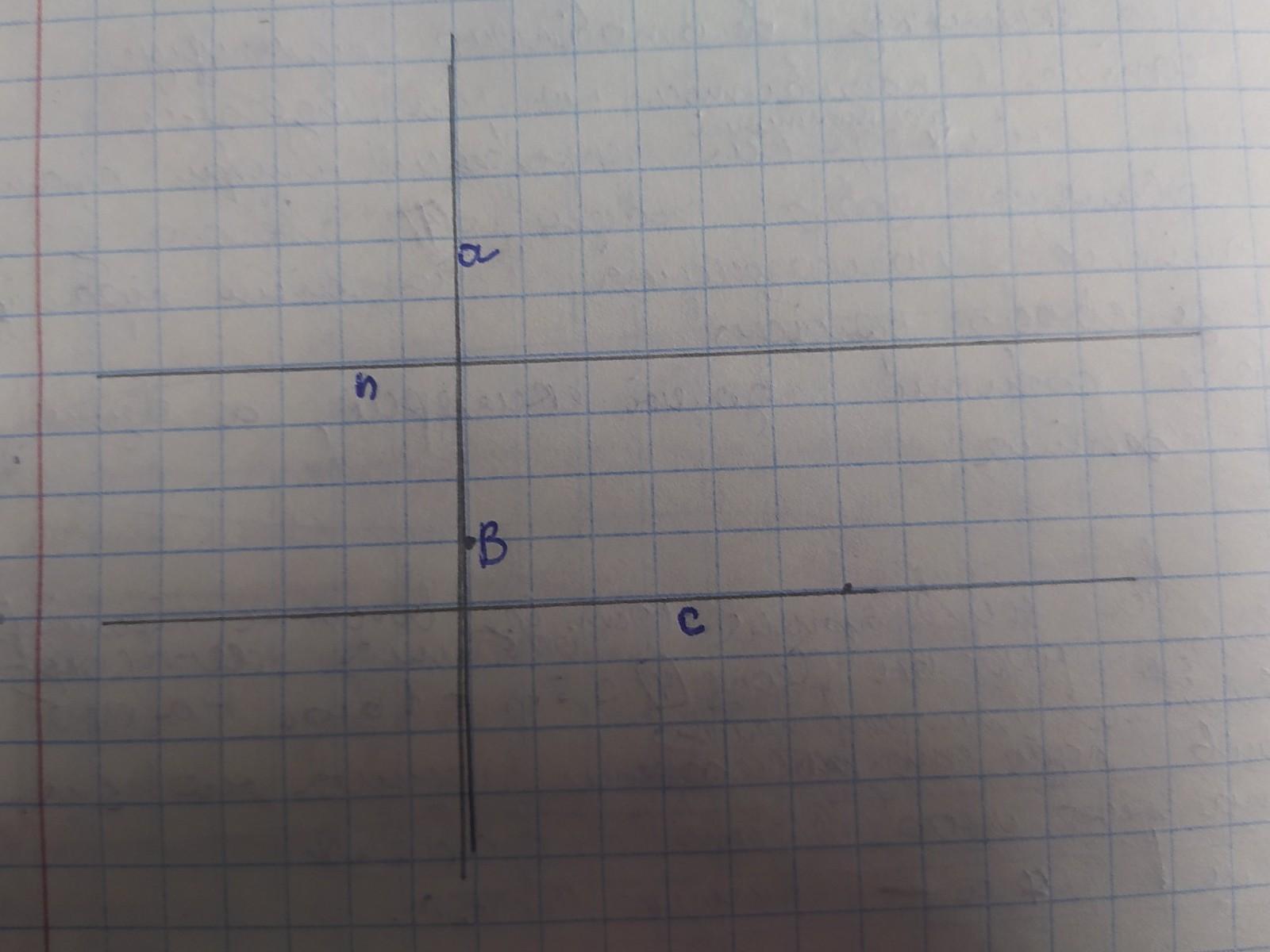 Накресліть пряму n та позначте точку В, що не належить до прямої n.За допомогою косинця та лінійки проведіть через точку В пряму а,перпендикулярну до прямої n ,та пряму с перпендикулярну до прямої m