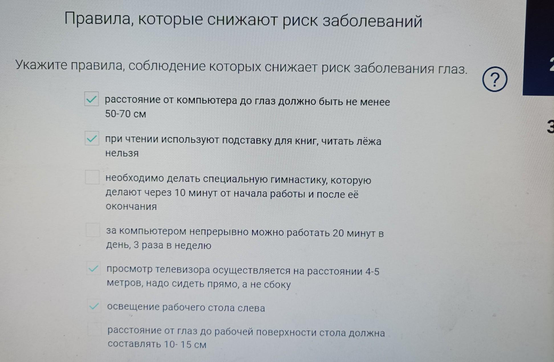 6 вариант наверное не правильный. Освещение со всех сторон не мешает человеку и не портит ему зрение