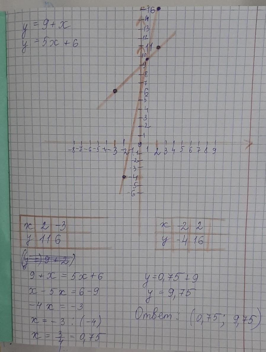 Докажите что пересекаются графики функций: y= 9 +х и у= 5 х+ 6 с чертежом. Фотку прикреплю как решать нужно.