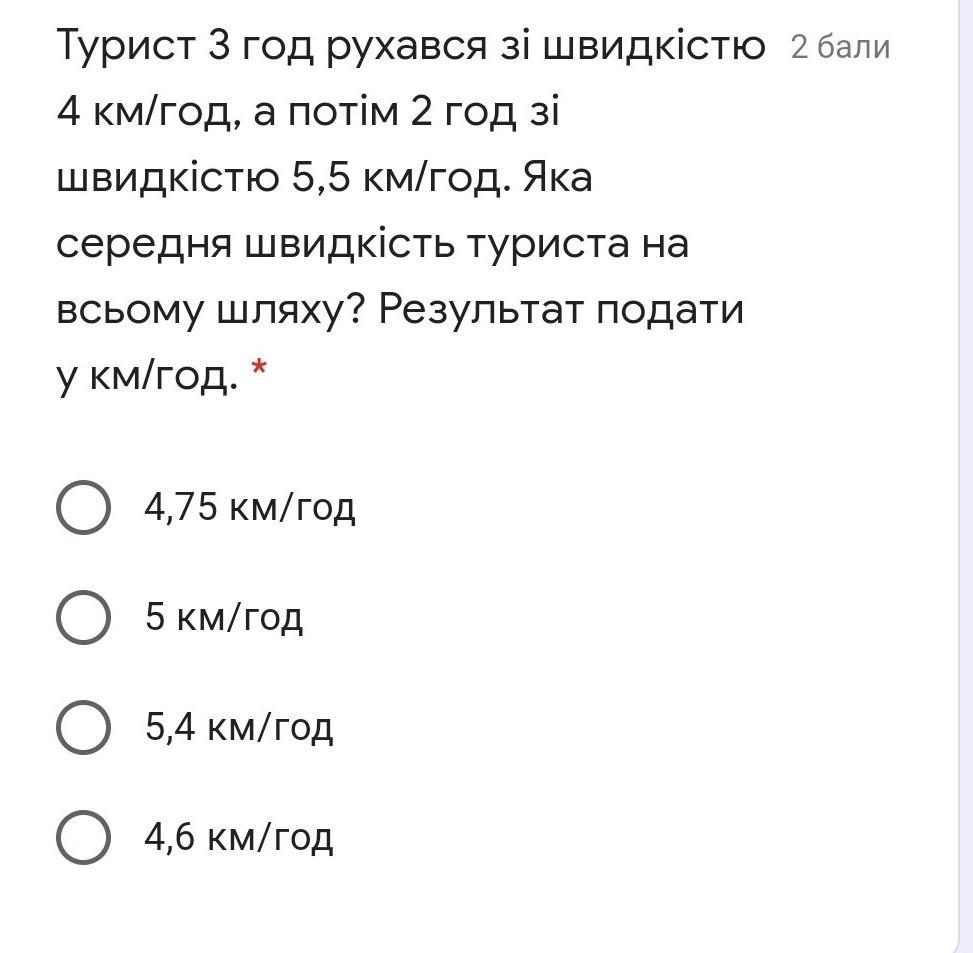 Vcp = (S₁ + S₂) / (t₁ + t₂) = (12 + 11) / (3 + 2) = 4,6 км/ч