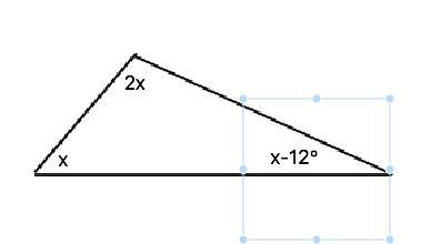 Примем один угол равным х. Он вдвое меньше другого => другой равен 2х. Первый больше третьего на 12° => третий меньше первого и равен х-12°.