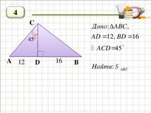 CD²=12²+16²=144+256=400>CD=20=>Sabc=(cd•AB):2=(28•20):2=280см²