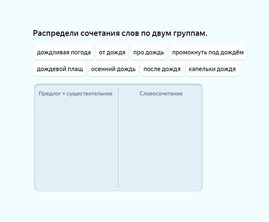 Предлог + существительное: от дождя, про дождь, после дождя