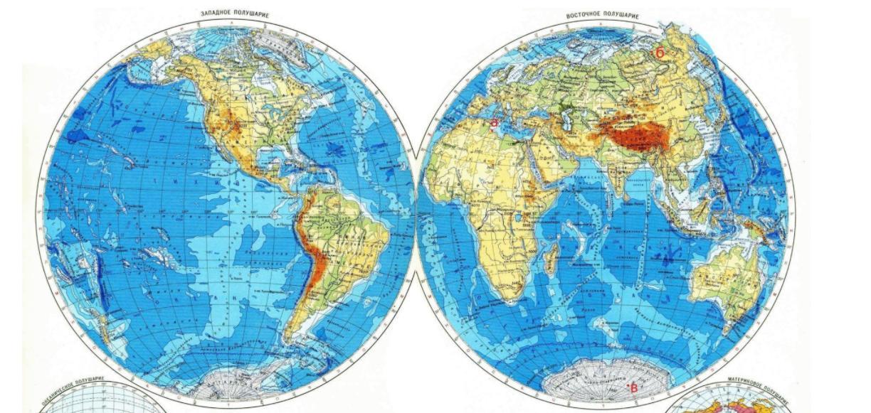 Обведите красным цветом пунсоны имеющие географические координаты : А (33° с. ш. 13° в. д.), Б(70° с. ш. 140° в. д.), В(78° ю. ш. 106° в. д.) Подпишите названия объектов и характерные им абсолютные значения температур.