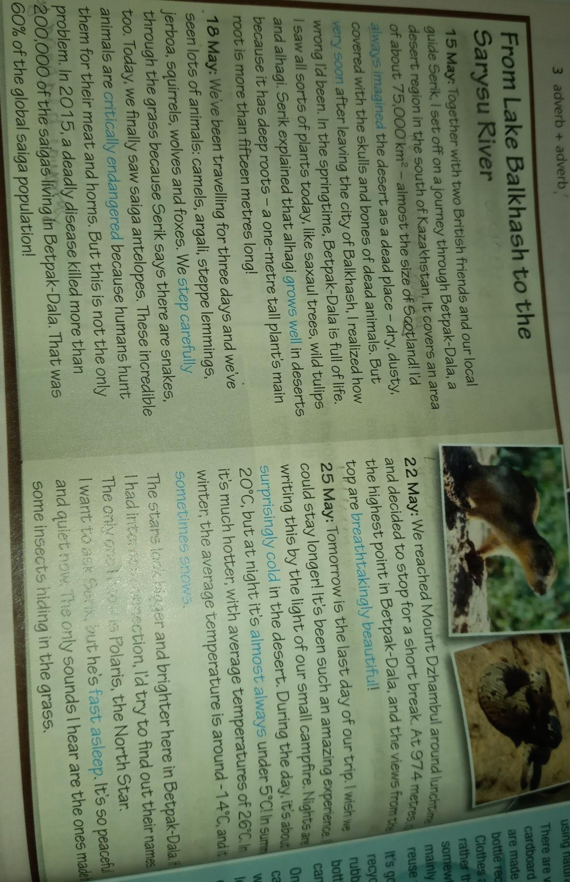 Look at the phrases in blue in the text an underline the adverb(s) in each phrase.Then decide which category 1-3 each phrase belongs to.