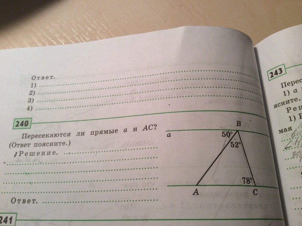 При пересечении прямых а и АС секущей АВ накрест лежащие углы равны, значит прямые параллельны (1 признак)
