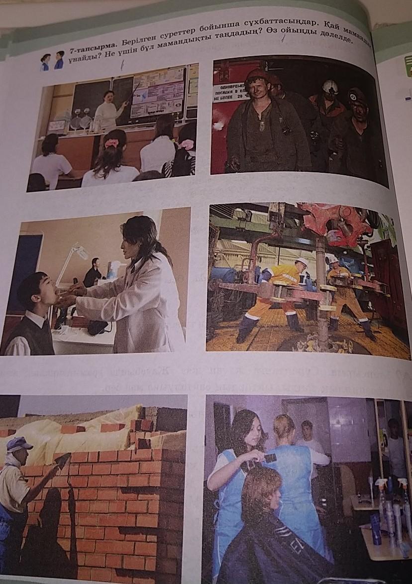 унайды? Не үшін бұл мамандықты таңдадың? Өз ойынды дәлелде. 7-тапсырма. Берілген суреттер бойынша сұхбаттасыңдар. Қай мамандық ұнайды