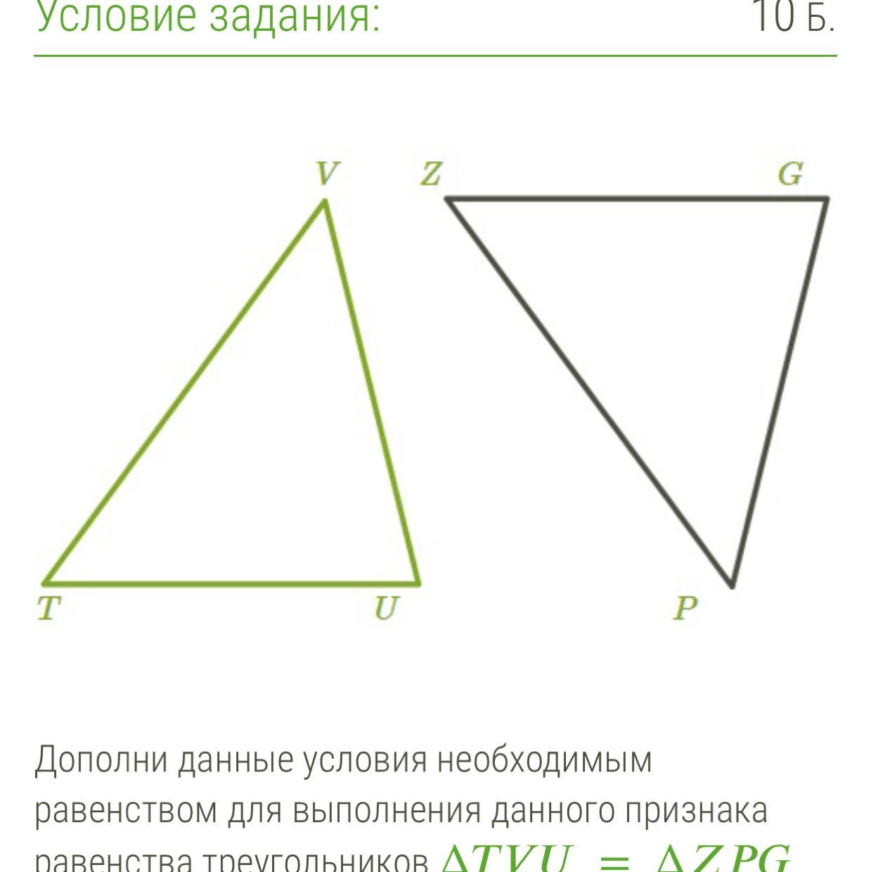 Дополни данные условия необходимым равенством для выполнения данного признака равенства треугольников Δ=Δ.