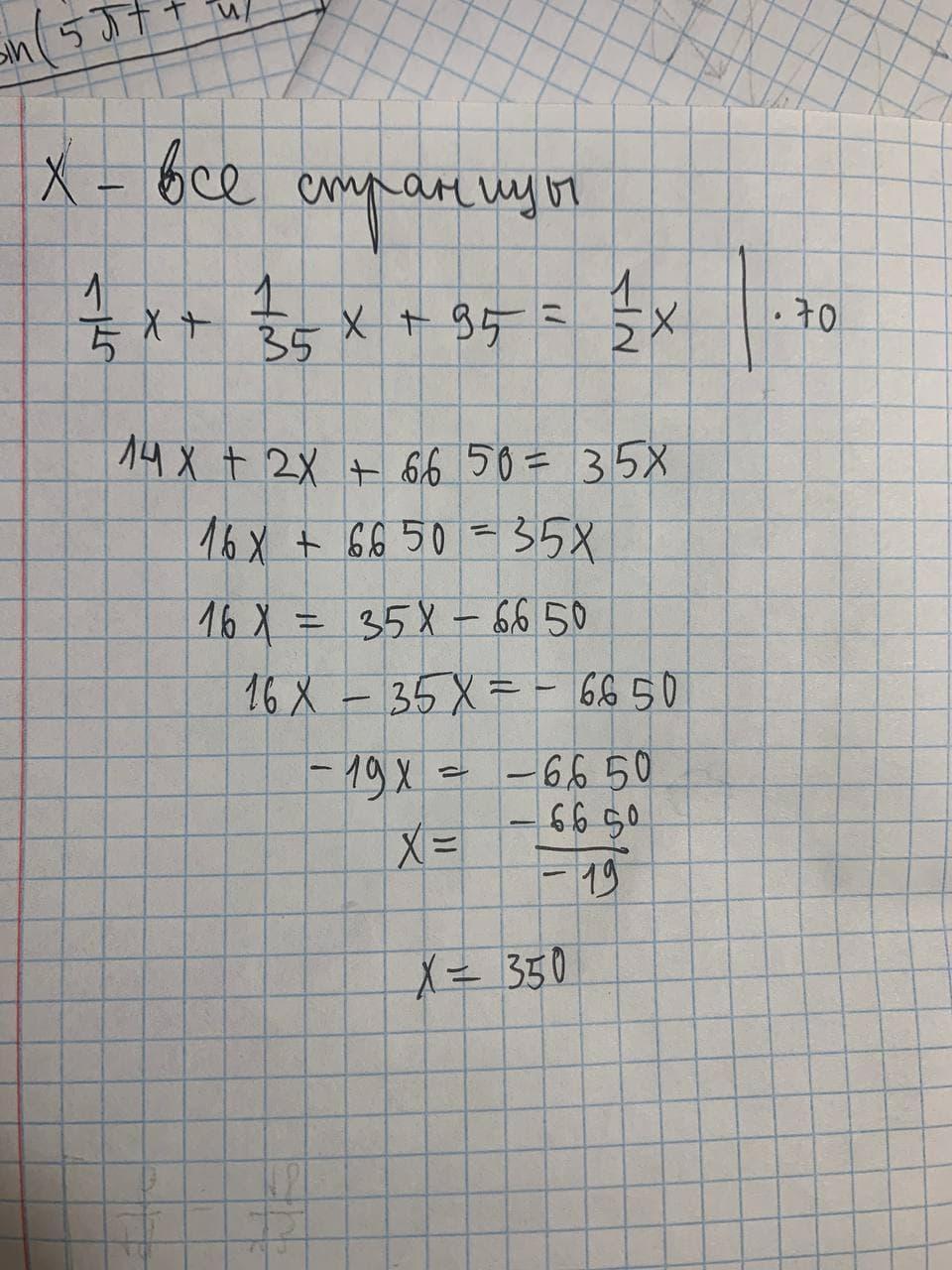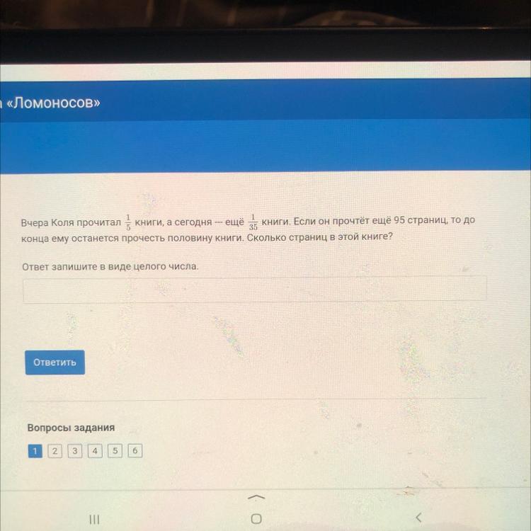 Вчера Коля прочитал 1/5 книги, а сегодня —-ещё 1/35 книги. Если он прочтёт ещё 95 страниц, то до