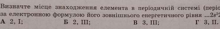 Визначте місце знаходження елемента в періодичній системі (період, група) за електронною формулою його зовнішнього енергетичного рівня ... 2s²2p¹. А 2. I; Б2, III; в 3, III, T 3, ІІ.