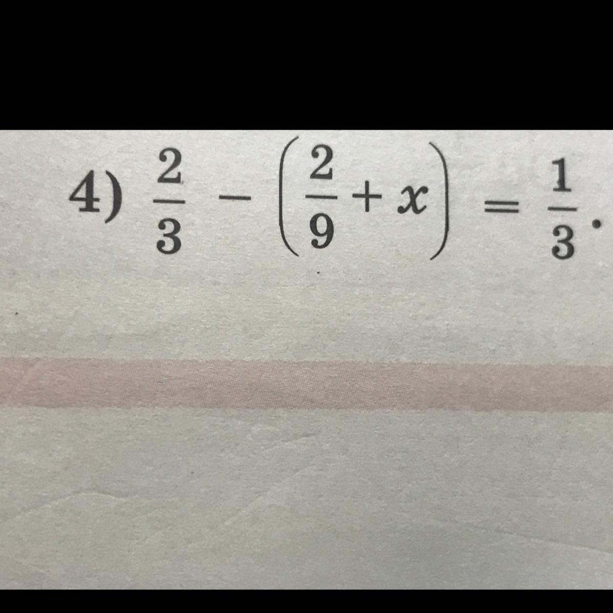x= 1/9, так выносим из скобки 2/9 и x , потом 2/3 и 2/9 под общий множитель , затем 4/9 переносим в правую часть , получаем -1/9 , сокращаем минус x и -1/9, и получаем 1/9