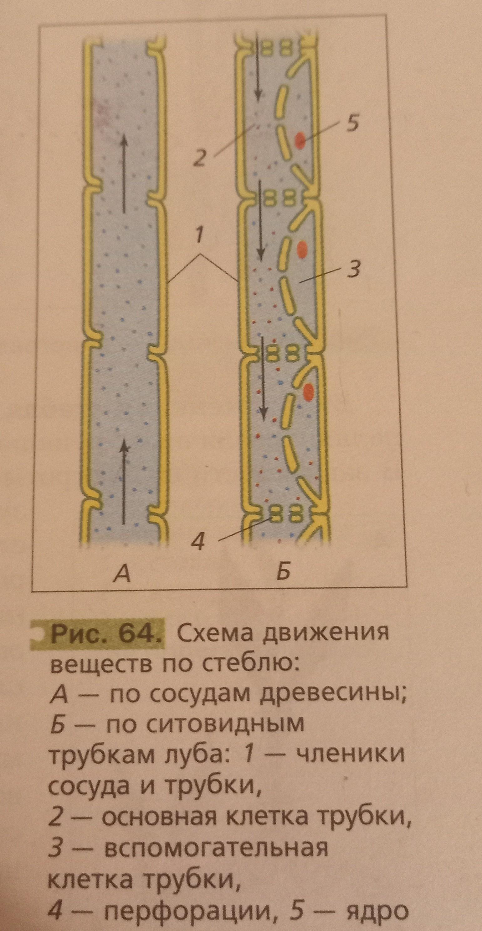 1 - ксилема. По ней перемещается вода с растворенными в ней минеральными веществами от корней к листьям и к другим частям растения.