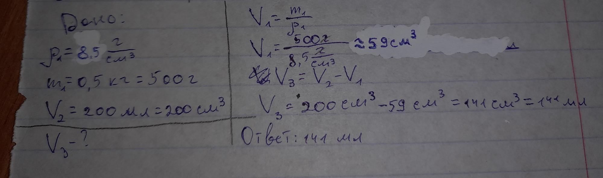 V₁ = m / ρ = 500 / 8,5 ≈ 60 см³