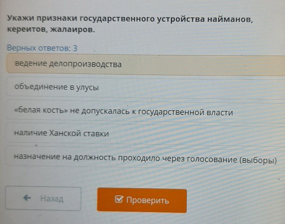 Укажи признаки государственного устройства найманов, кереитов, Жалаиров. Верных ответов: 3 ведение делопроизводства объединение в улусы «белая кость» не допускалась к государственной власти наличие Ханской ставки назначение на должность проходило через голосование (выборы) помггите СРОЧНО!!!
