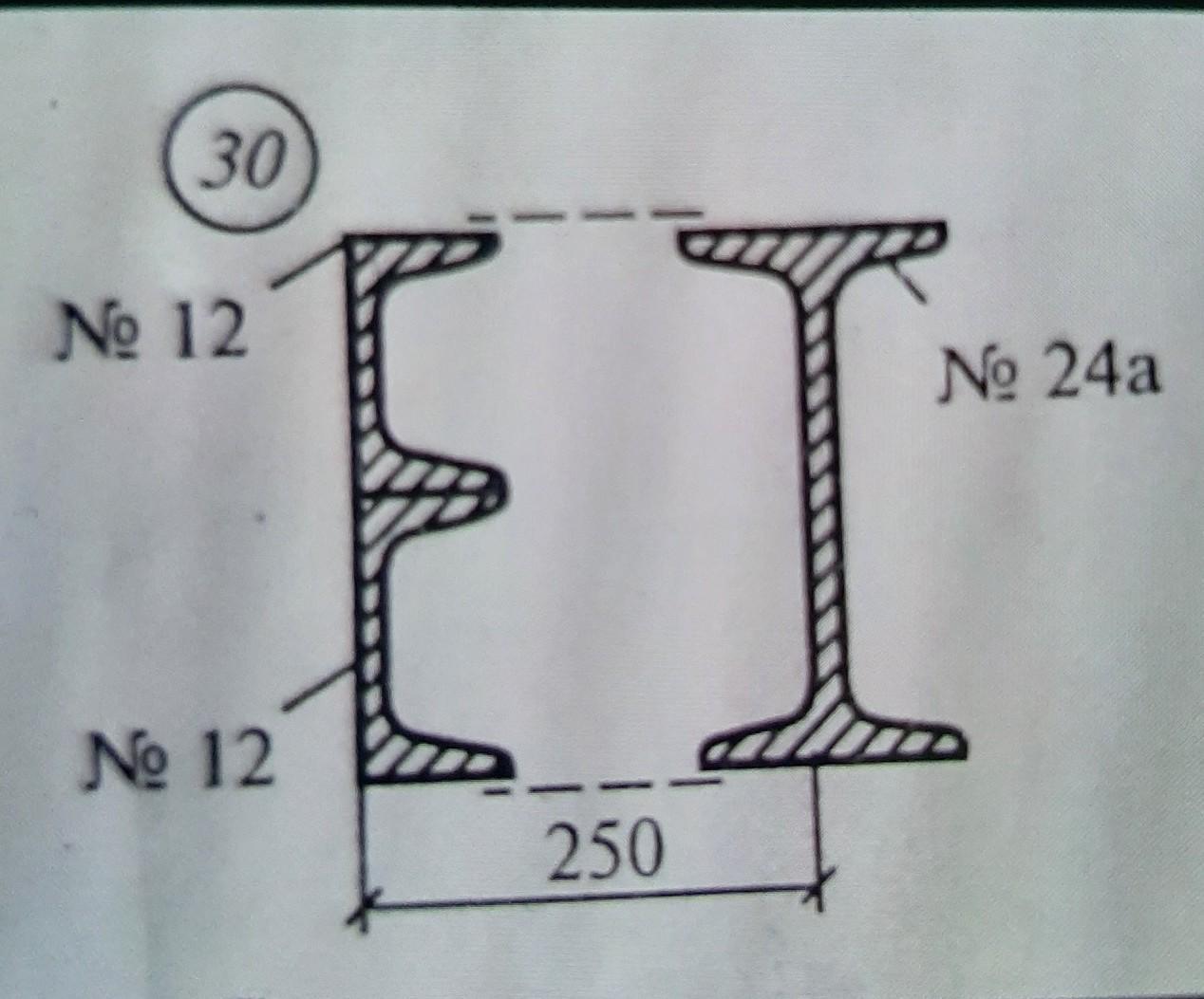 расположение центра масс для двутавра №24а - 250 мм от полки швеллера, вес 25,8 кг / м
