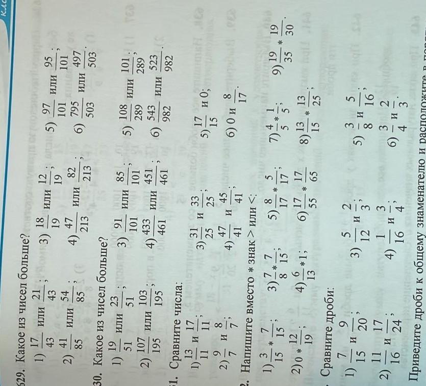В дробях с одинаковыми знаменателями больше та дробь, у которой больше числитель. В дробях с одинаковыми числителями больше та, у которой меньше знаменатель. В дробях с разными числителями и знаменателями, больше та, которая в виде десятичной дроби больше другой дроби в десятичной форме.