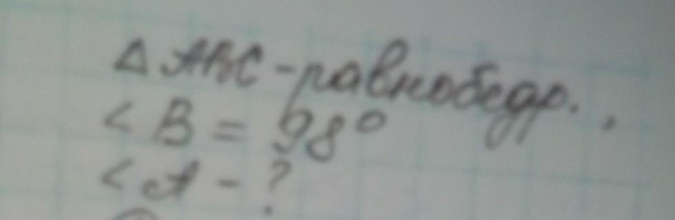Так как у равнобедренного треугольника углы при основании равны, то они получаются 82/2=41°