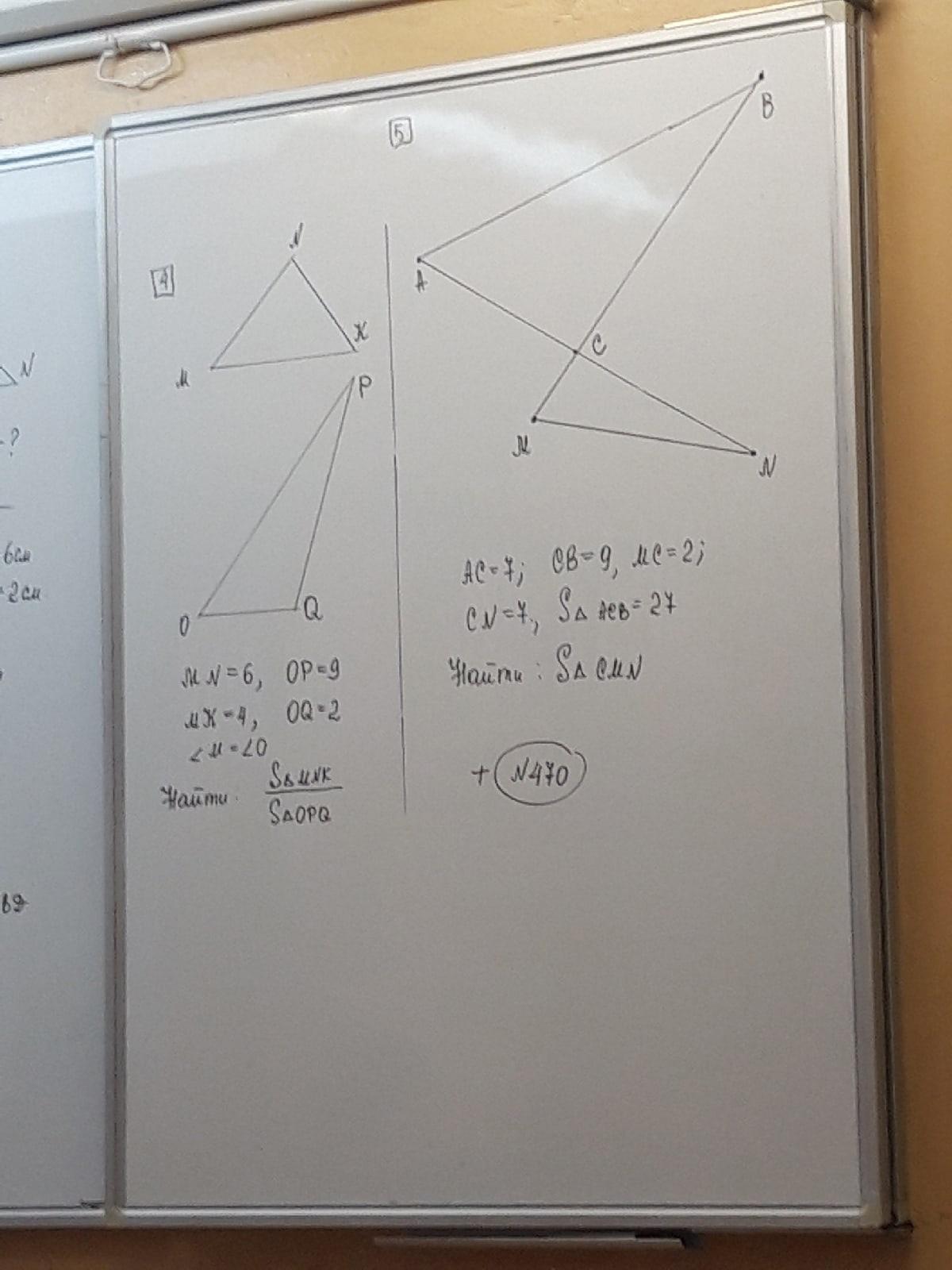 по свойству площадей площади треугольн ков с одинаковым острым углом(по условию) относятся как их основания
