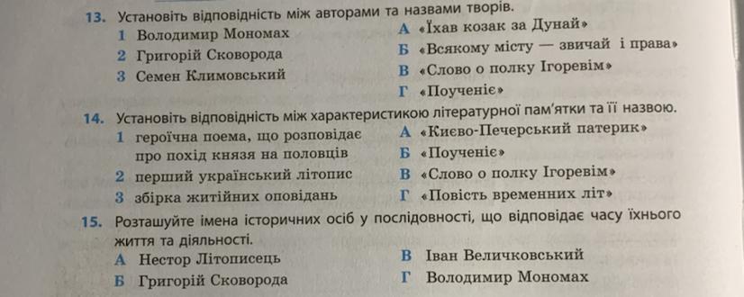 15. Розташуйте імена історичних осіб у послідовності, що відповідає часу їхнього