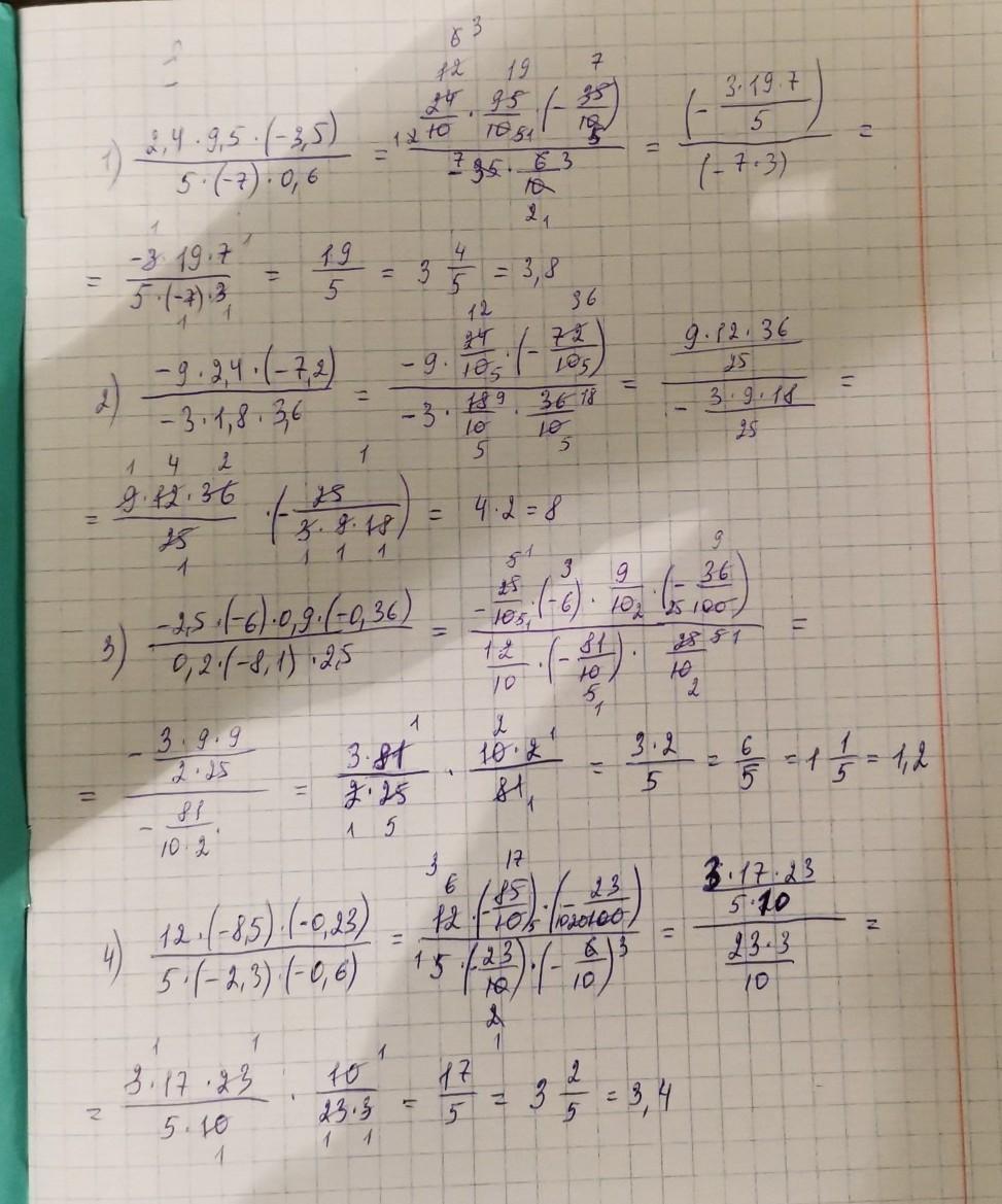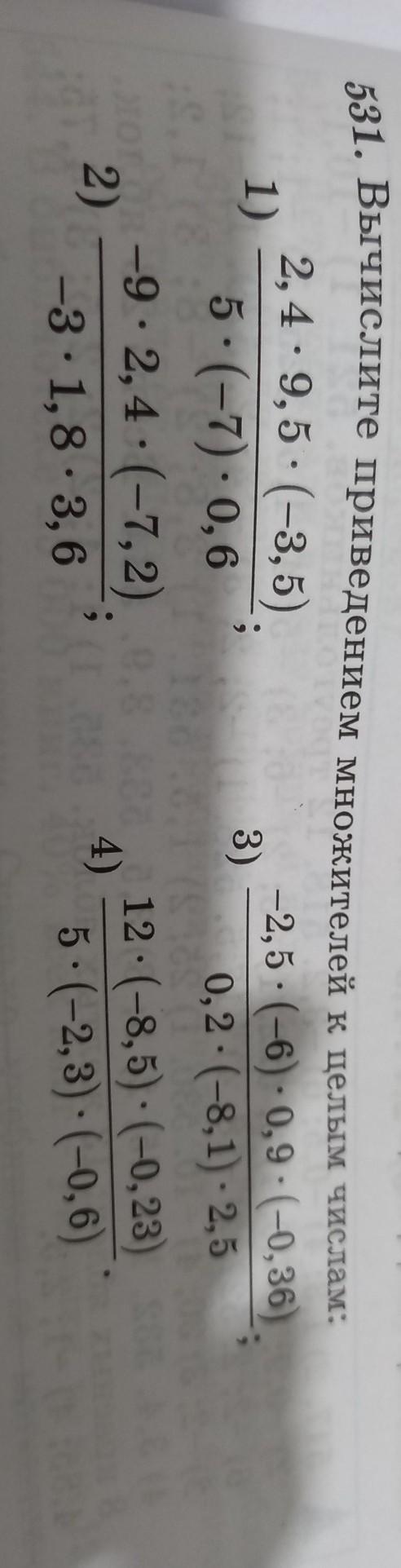 531. Вычислите приведением множителей к целым числам: 2.4-9.5-(-3.5) -2,5-(-6).0,9(-0,36) 1) 3) 5-(-7) -0,6 0,2-(-8,1). 2,5 -9-2.4.(-7,2) 12-(-8,5).(-0,23) 2 4 -3-1.8.3.6 5.(-2,3).(-0,6 —