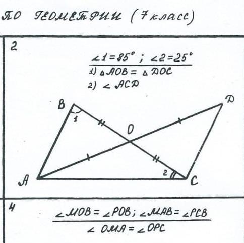 2)Поскольку треугольники равны, то угол OCD равен углу OBA=85°