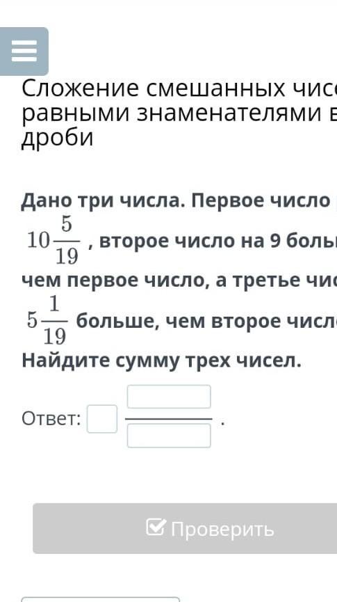 10 5/19+19 5/19+ 24 6/19=53 16/19